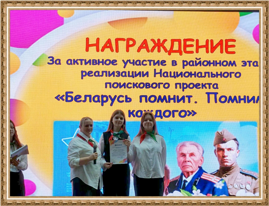 Девочки поднялись на сцену для вручения им диплома 2 степени в Национальном поисковой проекте"Беларусь помнит. ПОМНИМ КАЖДОГО".